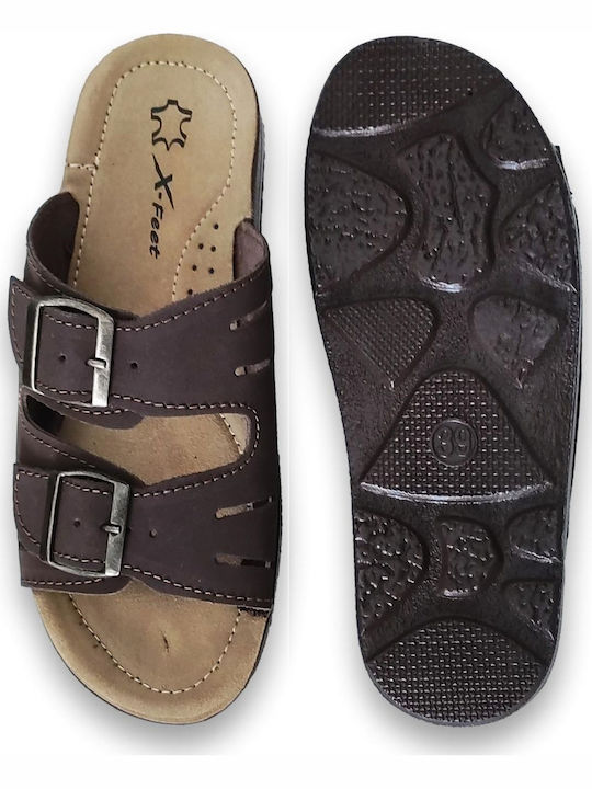 Bella Ανδρικές Παντόφλες Καφέ Α12 Δερμάτινες