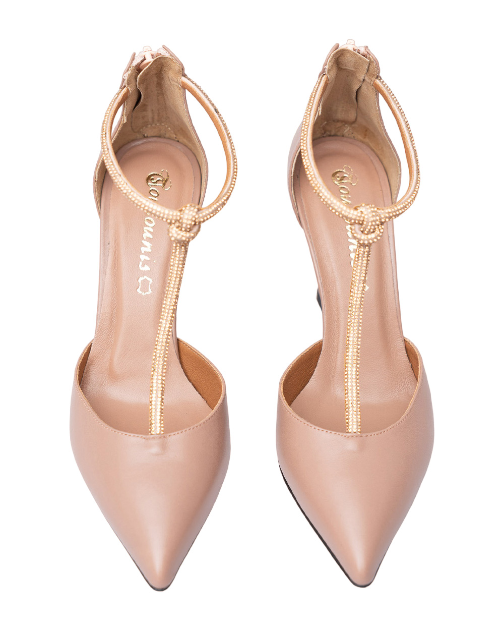 TOUTOUNIS Γυναικείες Γόβες Nude 202711 Δερμάτινες